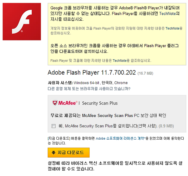 Tip / Tech 'shockwave flash.을 로드하지 못함' 이라고 뜰 때 크롬 사용 중 페이지 상단에'shockwave flash.을 로드하지 못함' 이라는 메시지가 뜨면서플래시를 로드하지 못하는 경우가 종종 생긴다. 한동안 괜찮았는데 또 이런 경우가 생겨서 검색해보니정확한 해결법이 딱히 안보여서 혹시나 하는 맘에 적어 둔다.(예전에 여기 포스팅 한 적이 있는거 같긴 한데.. ㅋㅋ) 1. 먼저 크롬에서 자체적으로 포함되어져 사용하는 플래시 플러그인을 사용 중지시켜야 한다. (항상 이넘이 문제였다.) - 주소창에 [chrome://plugins/] 을 입력하면 아래 그림처럼 플러그인 목록이 나오는데 플래시 항목을 찾아서 파란색 사용 중지를 클릭해 주면 된다.별도의 플래시를 설치했었다면 위와 같은 항목이 여러개일 텐테 그땐 위치 항목을 확인하고유저 디렉토리 아래인 것을 사용 중지..